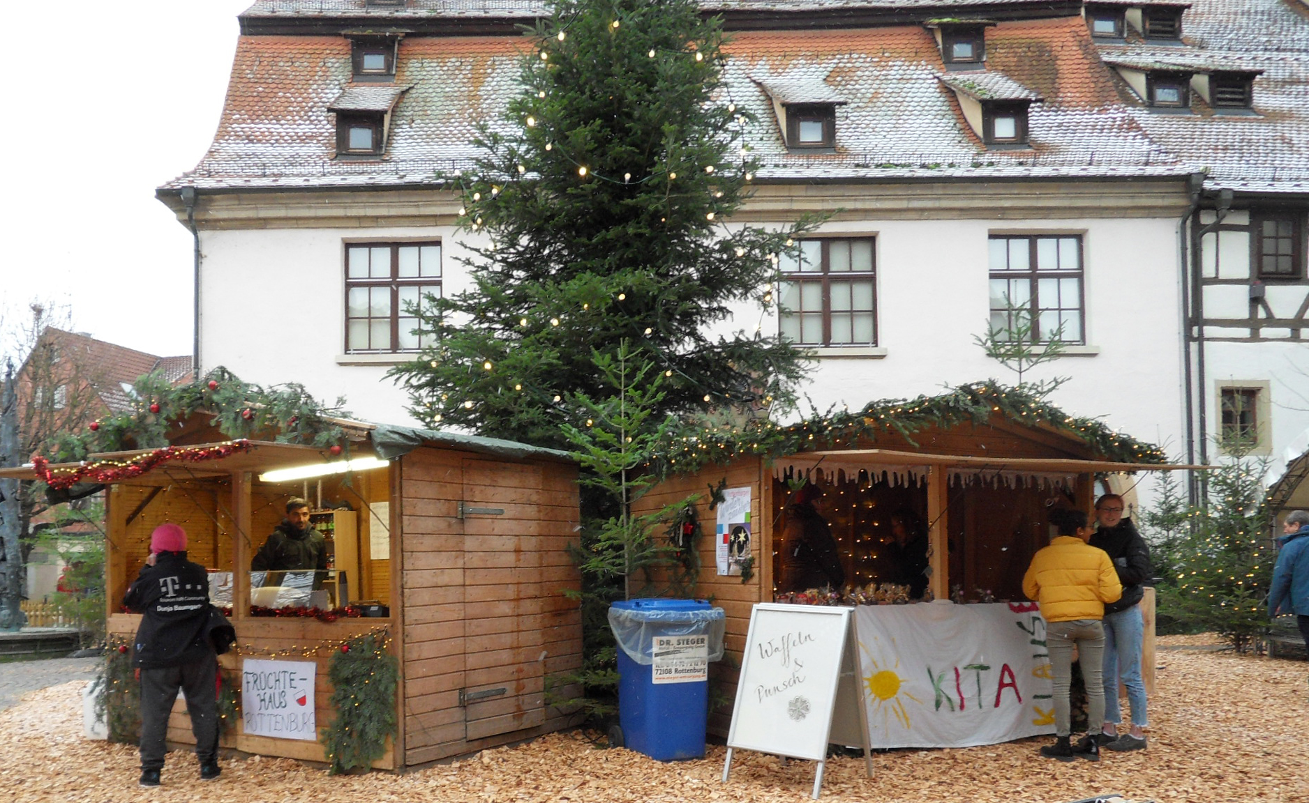 Auf dem Platz vor der Zehntscheuer wird ein Winterwald der Hochschule für Forstwirtschaft aufgebaut, der mit wechselnden Aktionen die Besucher*innen vor die Zehntscheuer lockt. Fotograf WTG Rottenburg am Neckarjpg, 2 MB